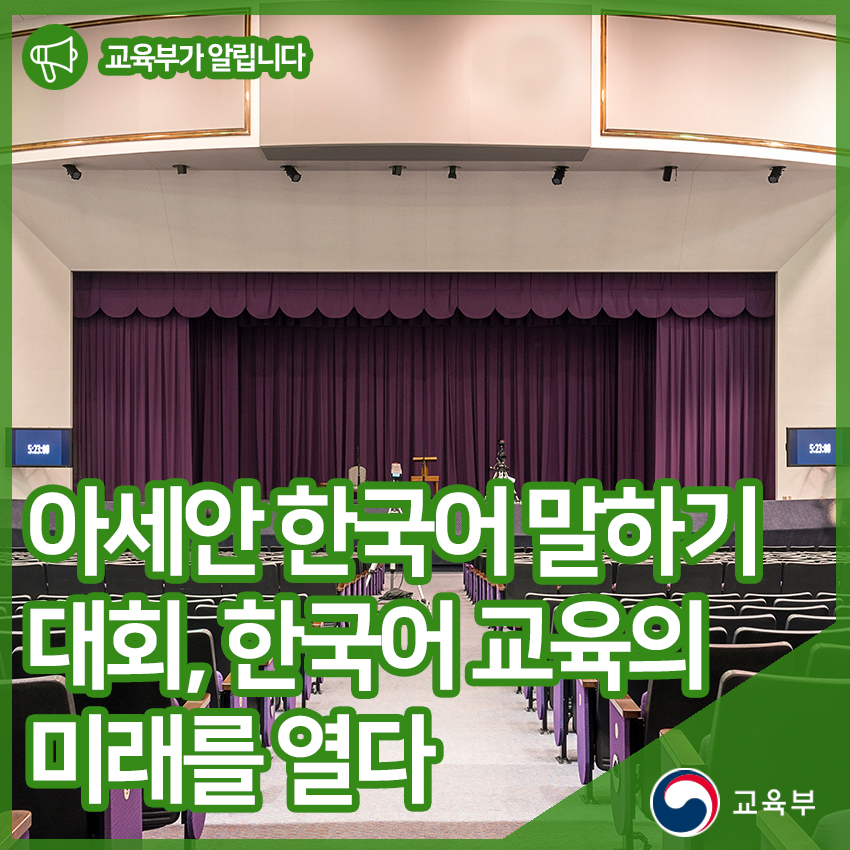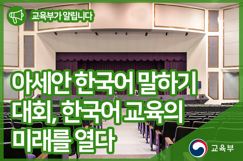 교육부(부총리 겸 교육부장관 유은혜)는 11월 26일(화)에 한·아세안 특별정상회의 부대행사로「제1회 아세안 중등학생 및 대학생 한국어 말하기대회(이하 한국어 말하기 대회)」시상식을 개최한다.