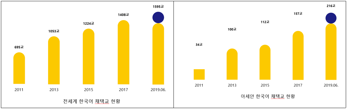 ※ 세계의 한국어 채택교 현황: 28개국 / 1,595개교 / 146,000여명