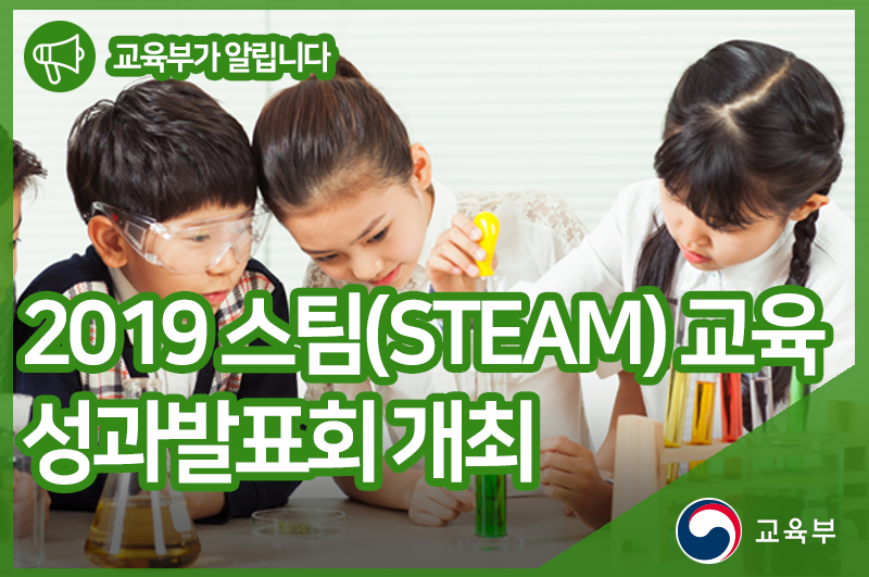 교육부(부총리 겸 교육부장관 유은혜)와 한국과학창의재단(이사장 안성진)은 11월 26일(화)에 르메르디앙 서울 호텔에서 「2019년 스팀(STEAM) 교육 성과발표회」를 개최한다.