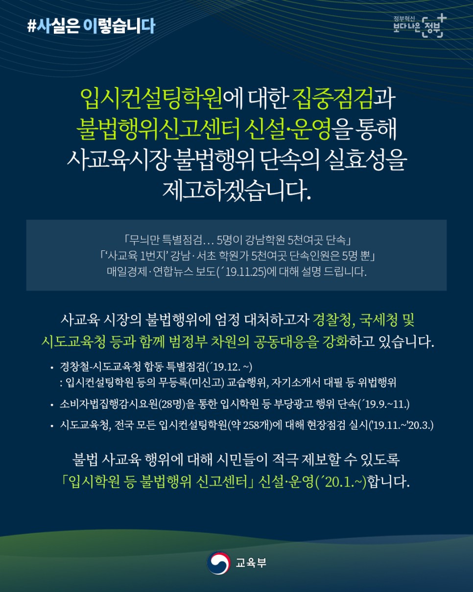 [입시컨설팅학원의 집중점검 및 불법행위신고센터 신설·운영을 통해 사교육시장 불법행위 단속합니다] 본문
