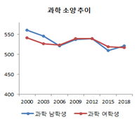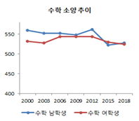 ** OECD 평균(PISA 2009 → PISA 2018): 남학생(-0.29 → -0.4), 여학생(0.32 → 0.2)
