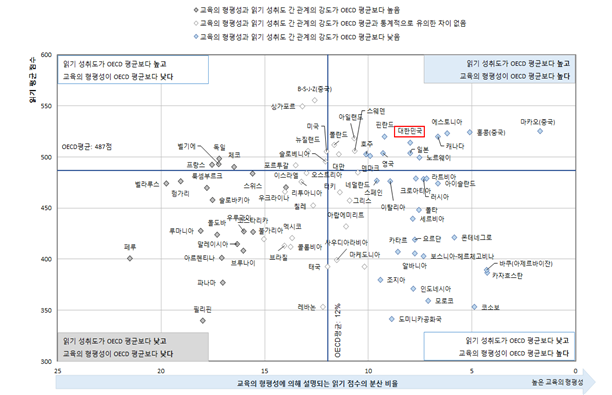 <참여국의 읽기 성취도와 형평성의 수준>