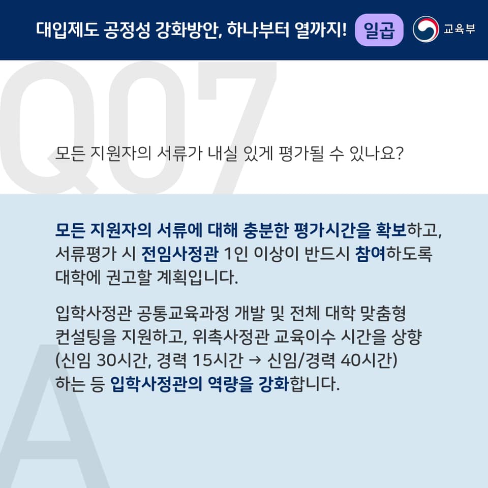 [대입제도 공정성 강화방안 하나부터 열까지, 일곱] 본문