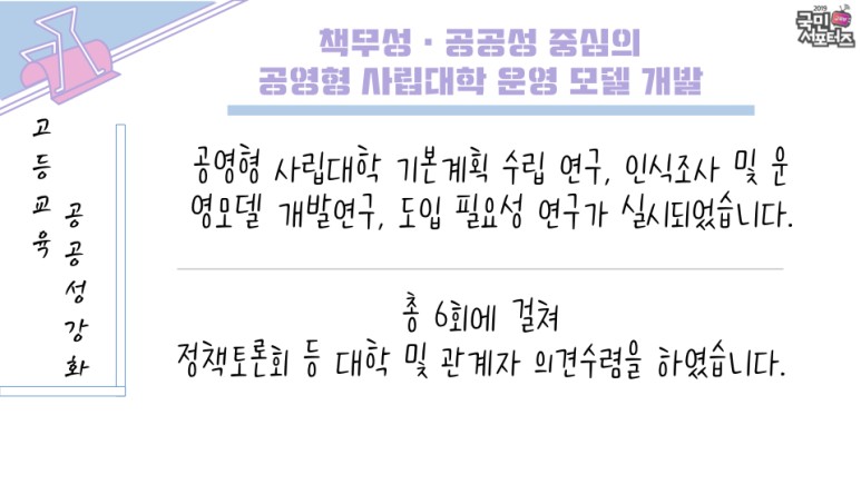 •공영형 사립대 도입에 대한 논의가 심화되었습니다.