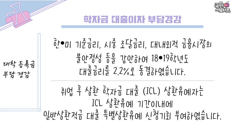 •학자금 대출이자 부담 경감을 위한 저금리 기조 유지 및 인하하였습니다. (20년 2.0%)