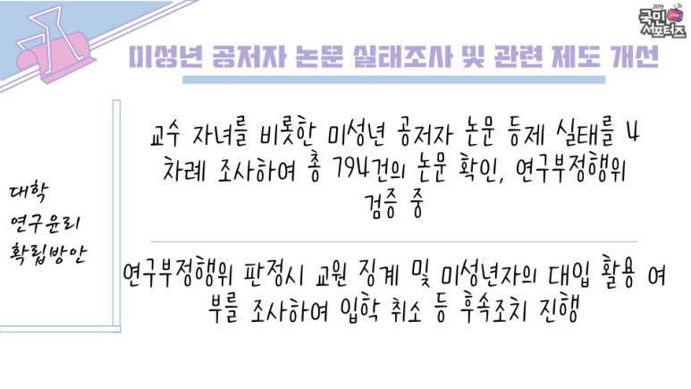 •미성년 공저자 논문이나 연구부정행위에 대해 교육부가 신속히 대응하였습니다.