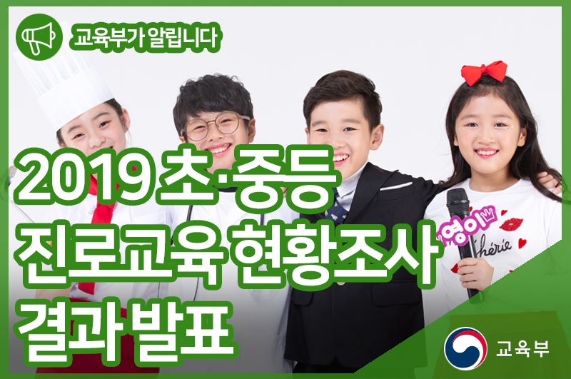 교육부(부총리 겸 교육부장관 유은혜)와 한국직업능력개발원(원장 나영선)은 ‘2019년 초·중등 진로교육 현황조사’의 결과를 발표하였다.