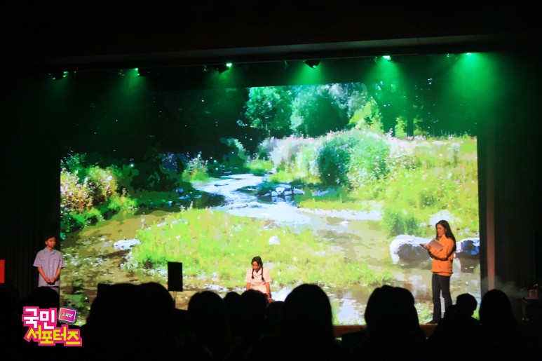 소수의 학생들이 준비한 한국 단편소설 <소나기> 연극은 케이팝 공연과는 다른 분위기로 즐거웠는데요! 주인공들의 연기도 정말 좋았지만, 엑스트라들의 재치가 눈에 띄었습니다. 날씨들은 검은 옷을 입고 배경음악에 맞춰 알맞은 춤을 추고, 허수아비나 새들은 무대공간을 꽉 채워주어 공연 내내 관람객들을 즐겁게 해주었습니다. 특히 놀랐던 점은 어색함 하나 없이 대사를 술술 외우는 학생들이었는데요! 덕분에 한시도 눈을 떼지 않고 연극에 몰입할 수 있었답니다.