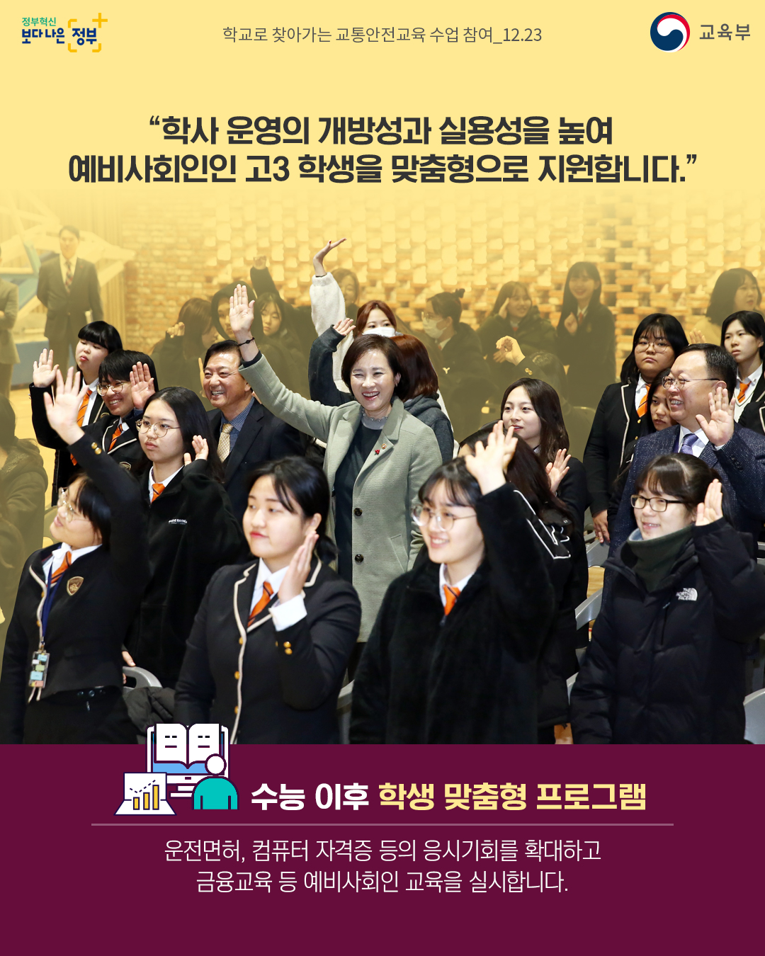 [수능 이후 학생 맞춤형 프로그램 등 예비사회인인 고3 학생을 지원합니다.] 본문