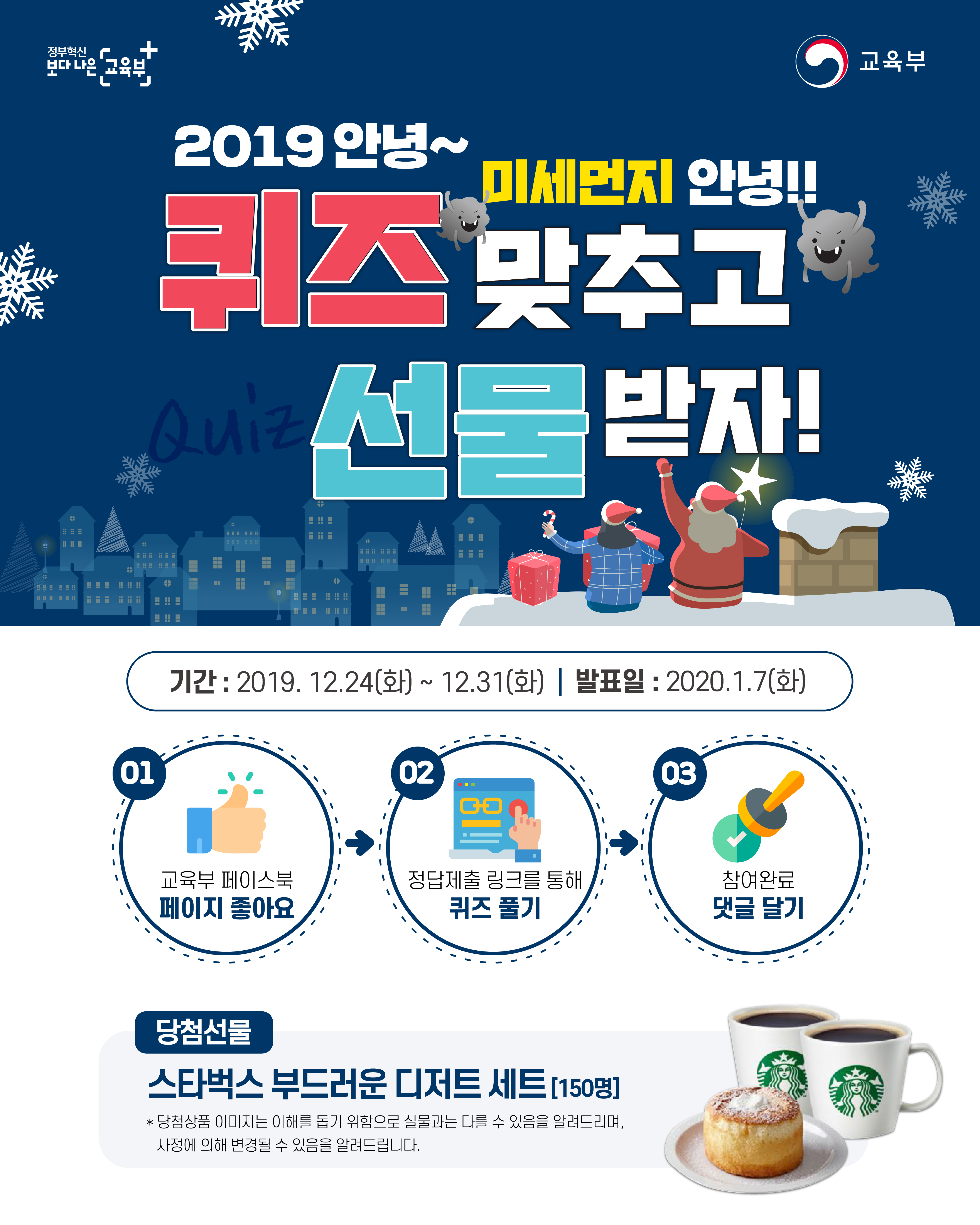 | [미세먼지 퀴즈 이벤트 당첨자 발표] (0) | 2020.01.07 |