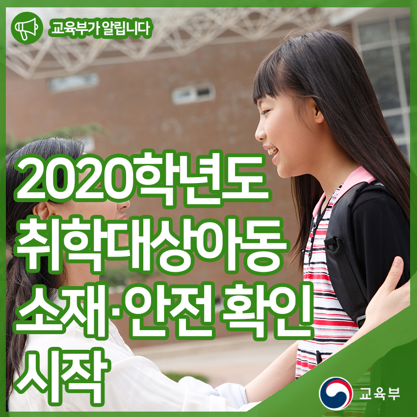 교육부(부총리 겸 교육부장관 유은혜)와 시도교육청은 단위학교, 지자체, 경찰청 등과 함께 2020학년도 초등학교 취학대상아동의 소재와 안전에 대한 집중 점검을 시작한다.