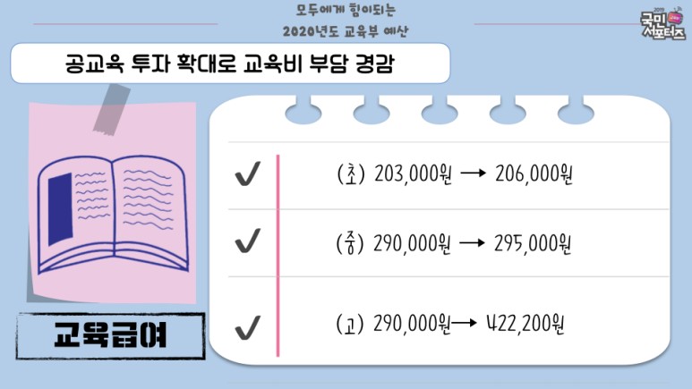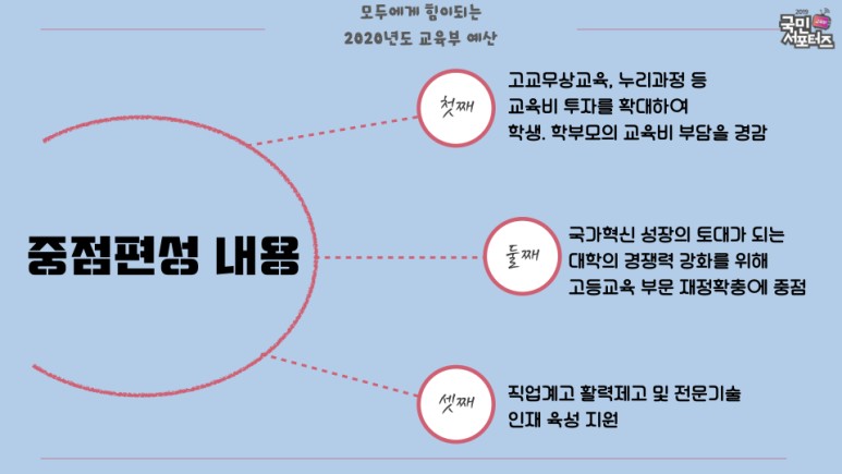 지금까지 다가오는 2020년도의 교육부 예산을 함께 살펴보았습니다.