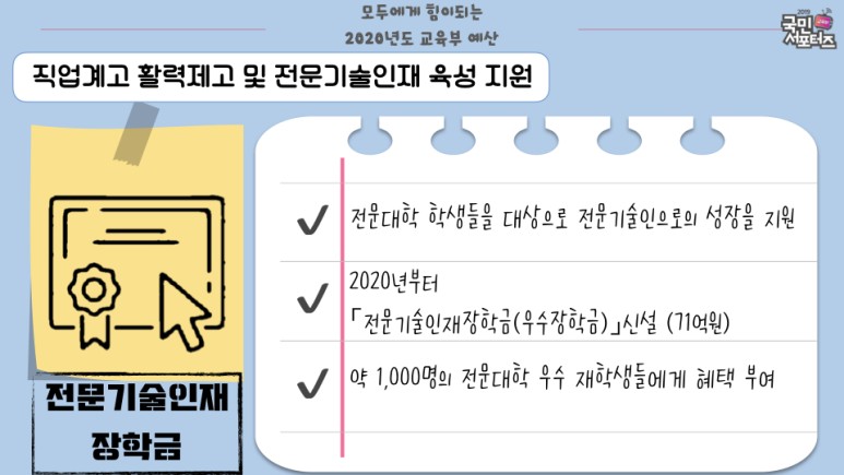 "모두에게 힘이 되는" 2020년도 교육부 예산! 본문