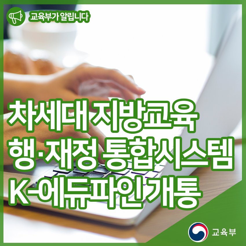 교육부(부총리 겸 교육부장관 유은혜)와 한국교육학술정보원(원장 박혜자)은 시도교육청과 학교에서 사용하던 에듀파인과 업무관리시스템을 하나로 통합한 K-에듀파인을 2020년 1월 2일(목)에 개통한다.