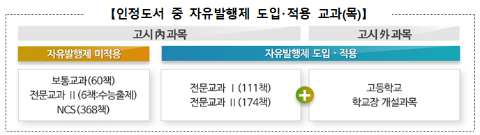 이번 개정이 적용되는 인정도서는 고등학교 전문교과I, 전문교과Ⅱ 및 학교장 개설과목 등으로 사회의 빠른 변화에 탄력적 대응이 필요한 교과서가 학교 현장에 적기에 개발・보급될 수 있도록 하였다.