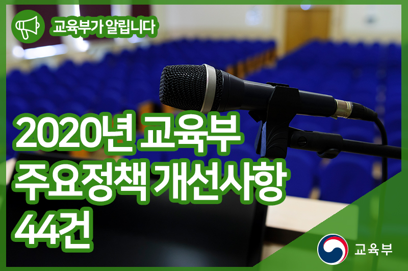교육부(부총리 겸 교육부장관 유은혜)에서는 2020년도의 교육부 주요정책 개선사항 44건을 발표했다.