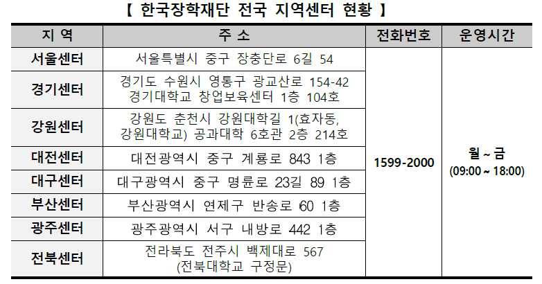학자금 대출이 필요한 학생들은 학자금 지원구간 산정 및 통지기간(약 8주)이 소요되기 때문에 대학의 등록마감일로부터 적어도 8주 전에 대출을 신청해야 안정적으로 대출이 가능하다. 기타 학자금 대출과 관련된 상세한 내용은 한국장학재단 누리집(www.kosaf.go.kr)과 고객상담센터(1599-2000)에서 확인할 수 있으며,전국 지역센터에 방문하면 학자금 대출과 관련하여 일대일 맞춤형 대면 상담을 받을 수 있다.