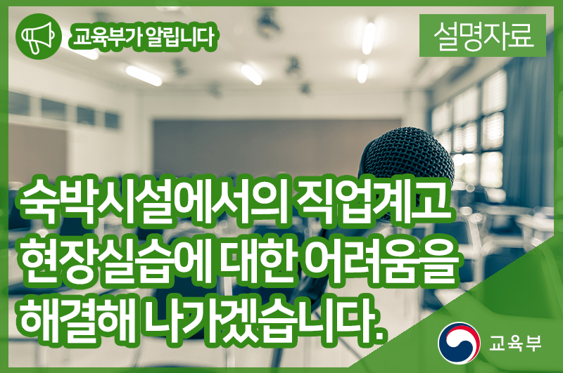 숙박시설에서의 직업계고 현장실습에 대한 어려움을 해결해 나가겠습니다.
