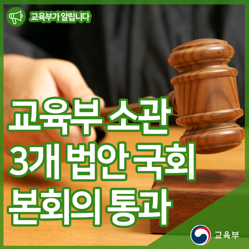 교육부 소관 3개 법안 국회 본회의 통과