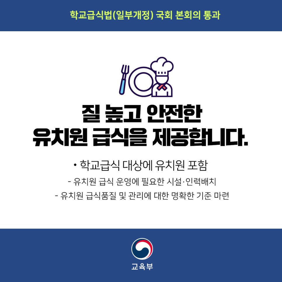 · 유치원 급식품질 및 관리에 대한 명확한 기준 마련