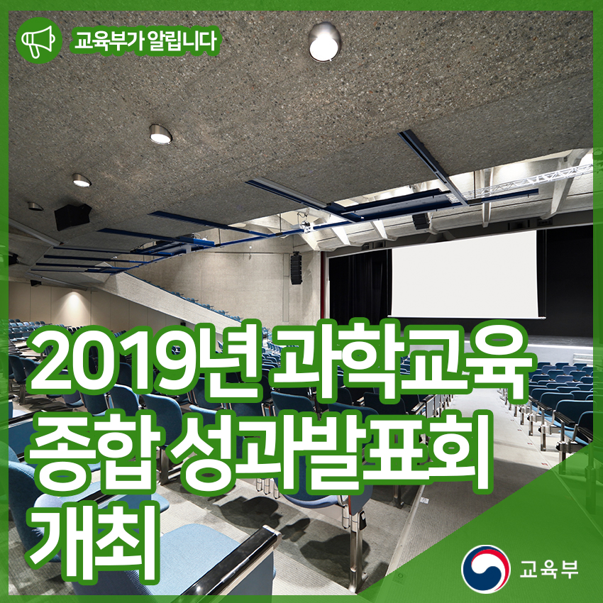 교육부(부총리 겸 교육부장관 유은혜)와 한국과학창의재단(이사장 안성진)은 1월 15일(수), 대전 케이티(KT) 인재개발원에서 ‘2019년 과학교육 종합 성과발표회’를 개최하였다.