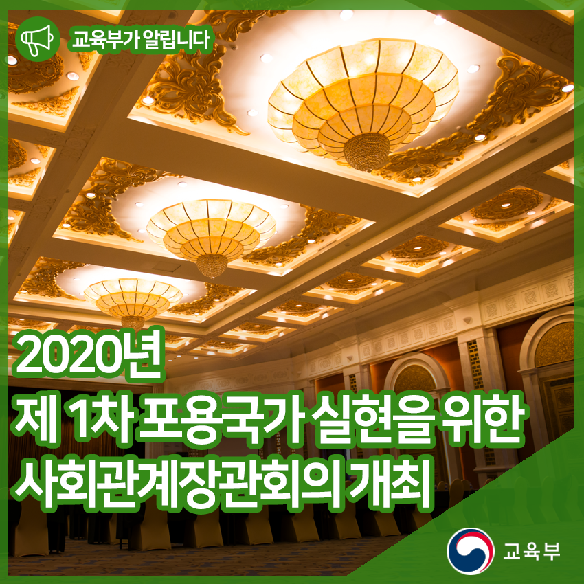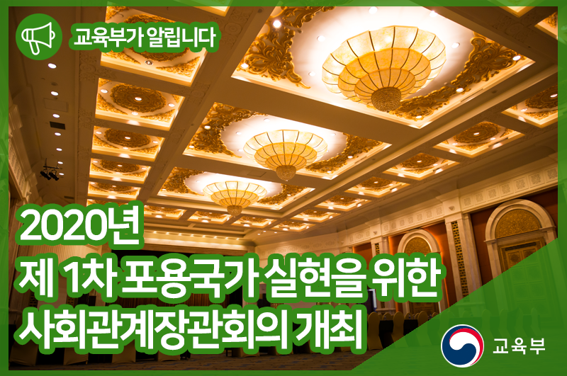 교육부(부총리 겸 교육부장관 유은혜)는 1월 17일(금) 정부서울청사에서 2020년 제1차 포용국가 실현을 위한 사회관계장관회의를 개최한다.