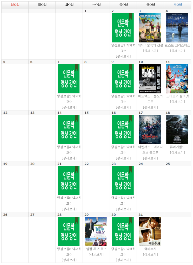 대구광역시립중앙도서관에서는 2020년 1월이 박재희 교수의 인문학 영상 강연과 영화상영으로 알차게 채워져 있는데요. 자세한 일정은 아래 사진을 참고해주시면 좋을 것 같습니다.