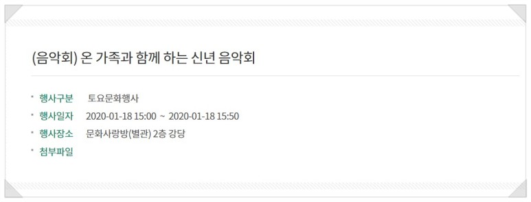 음악회를 좋아하시는 분들은 이번 방학에 한 번 가셔서 들으시면 좋을 것 같습니다. 이런 문화행사가 자주 열리는 건 아니니까, 아주 좋은 기회겠죠?