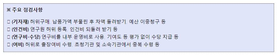 <국가연구개발사업의 정부지원금 집행실태> 점검 결과