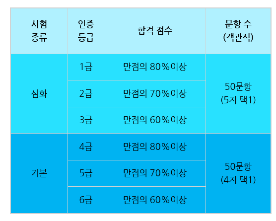 고급(1,2급)과 중급(3,4급) 시험 응시자가 대부분인 현실을 반영한 것이라 할 수 있습니다.