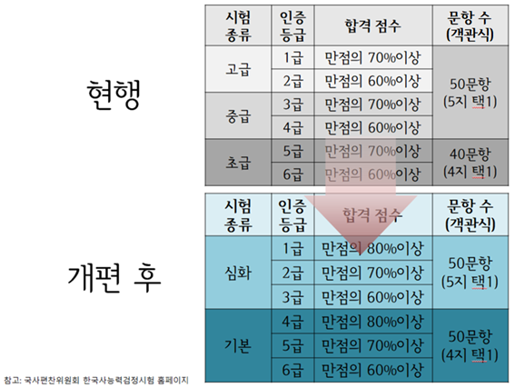 ※위와 같은 개편 관련 내용은 국사편찬위원회 한국사능력검정시험 홈페이지를 참고하였습니다.