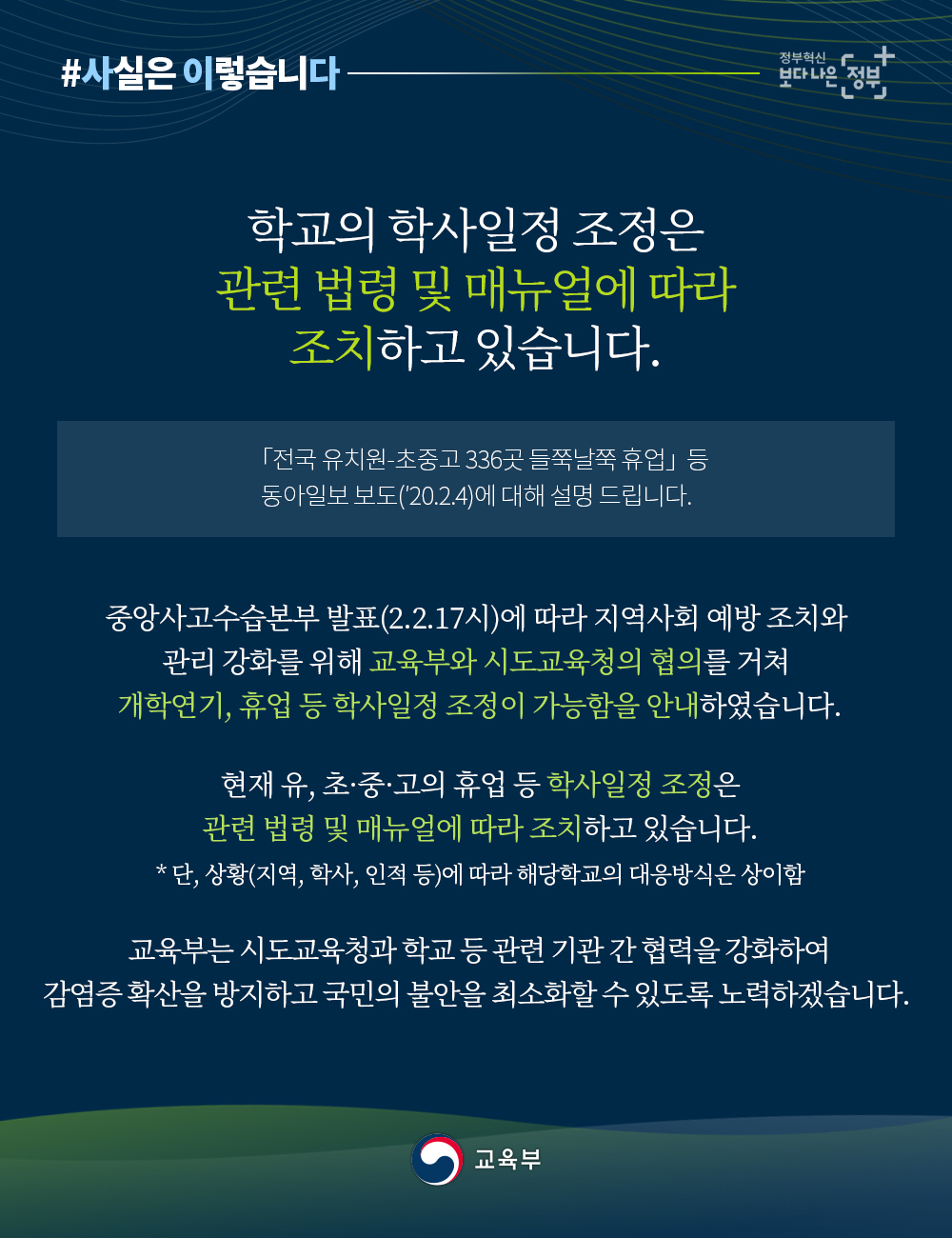 [학교의 학사일정 조정은 관련 법령 및 매뉴얼에 따라 조치하고 있습니다.] 본문