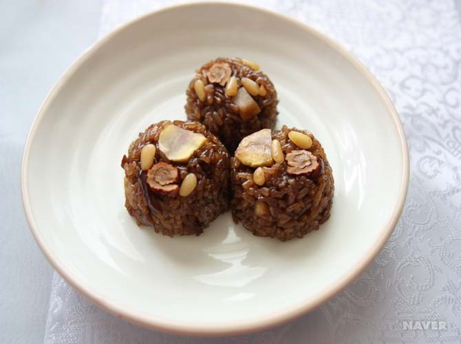 찹쌀, 대추, 밤, 흑설탕, 참기름, 잣, 간장, 계핏가루
