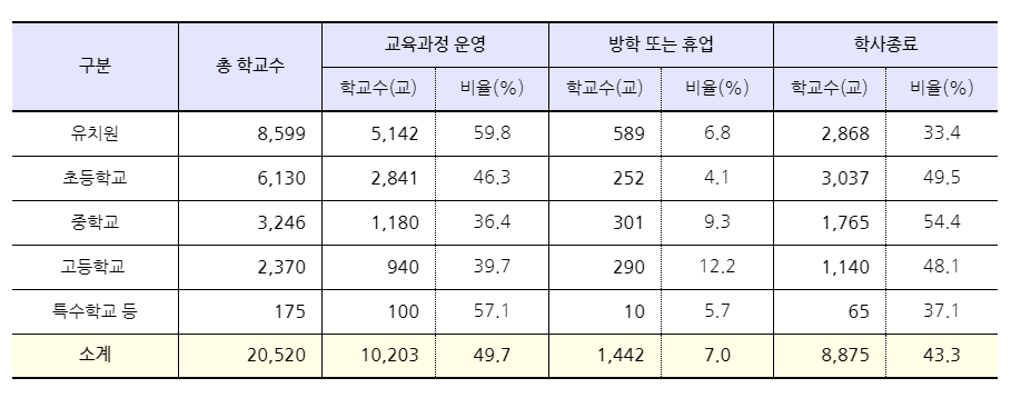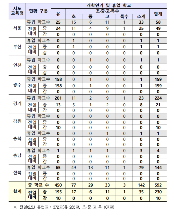 학사일정 조정 현황 (2.6. 10시 기준, 실제 휴업 학교수)