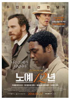 음악가의 인생을 살던 '솔로몬 노섭'은 어느날 갑자기 납치되어 노예로 팔려갑니다. 그리고 그에겐 '플랫'이라는 새 이름이 주어집니다. 자유를 납치당한 남자의 12년을 그려낸 영화입니다. 특히 실화를 기반으로 만든 영화라는 점이 충격적인데요. '만약 나의 자유가 한 순간에 빼앗긴다면 어떨까'를 생각하며 감정 이입해서 봤던 영화입니다.