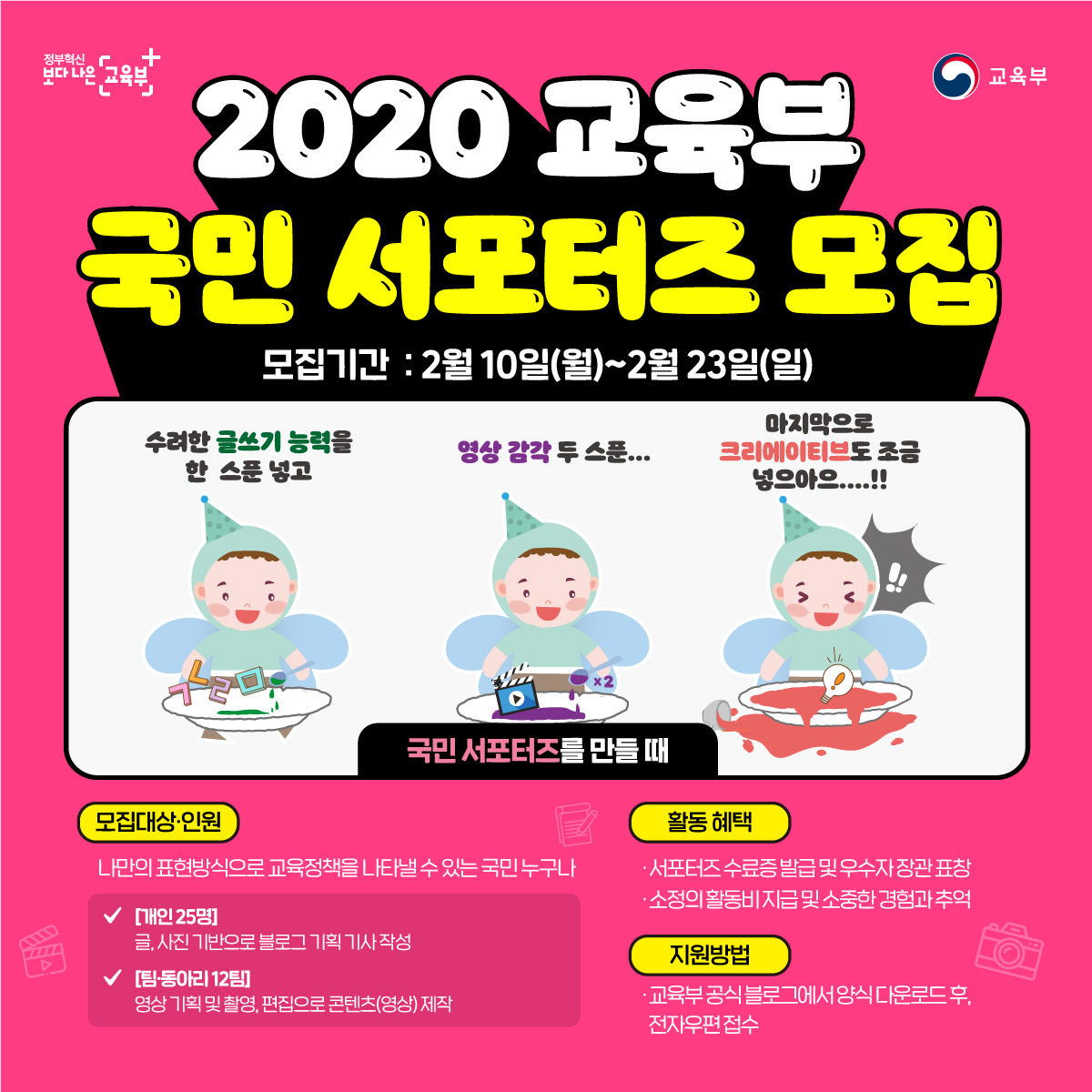 [모집공고] 2020 교육부 국민 서포터즈 모집 (~2/23) 본문