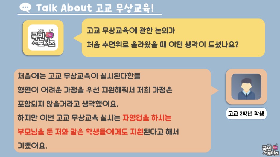 오늘은 여러분과 함께 고교 무상교육에 관하여 알아보고,