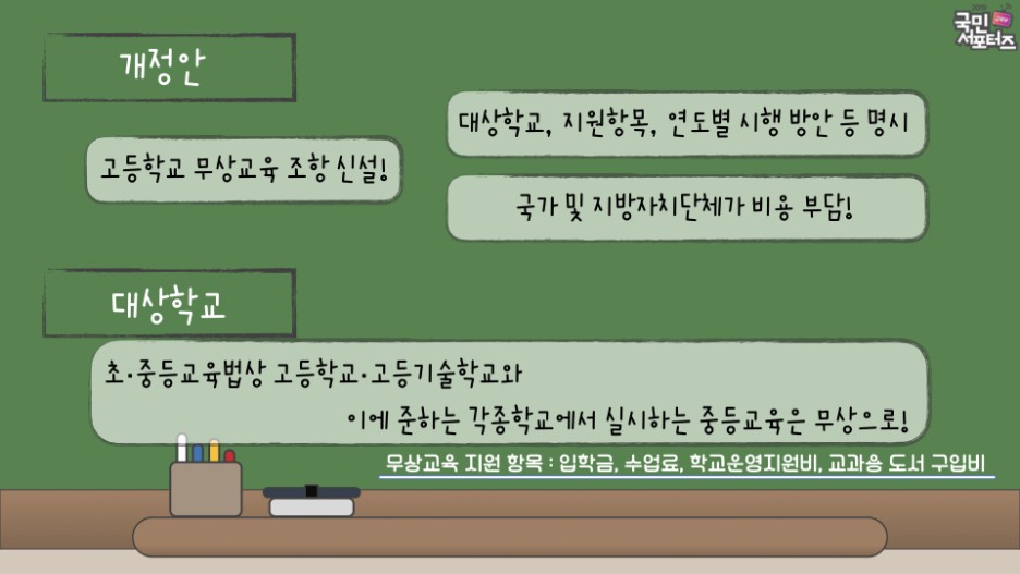 ※무상교육 지원 항목 : 입학금, 수업료, 학교운영지원비, 교과용 도서 구입비