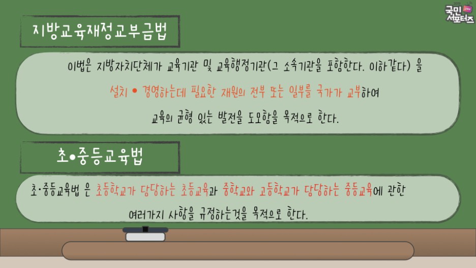 고교무상교육을 위해 개정된 「지방 교육재정교부금법」 및 「초·중등교육법」은 위와 같은 내용을 담고 있는데요. 이 법의 개정안은 고등학교 무상교육의 안정적인 시행 및 재원 확보를 위한 근거를 확보하기 위하여 마련되었다고 합니다.