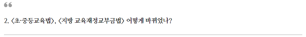 근거를 확보하기 위하여 마련된 「초·중등교육법」 및 「지방 교육재정교부금 법」 개정안을 함께 살펴보고