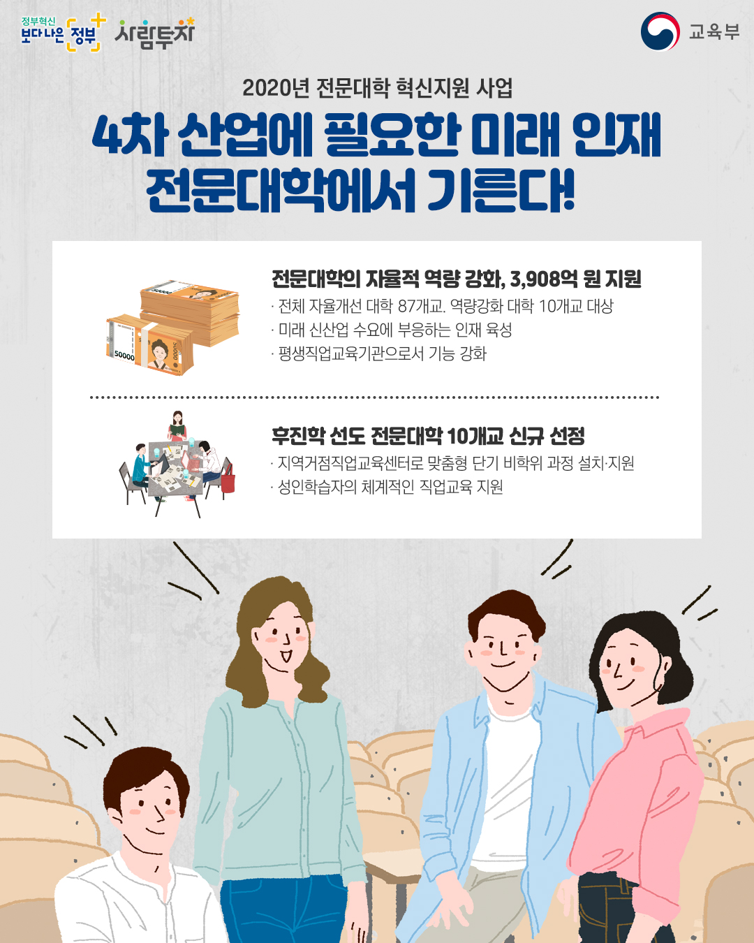✔️ 전문대학의 자율적 역량강화(3,908억 지원)