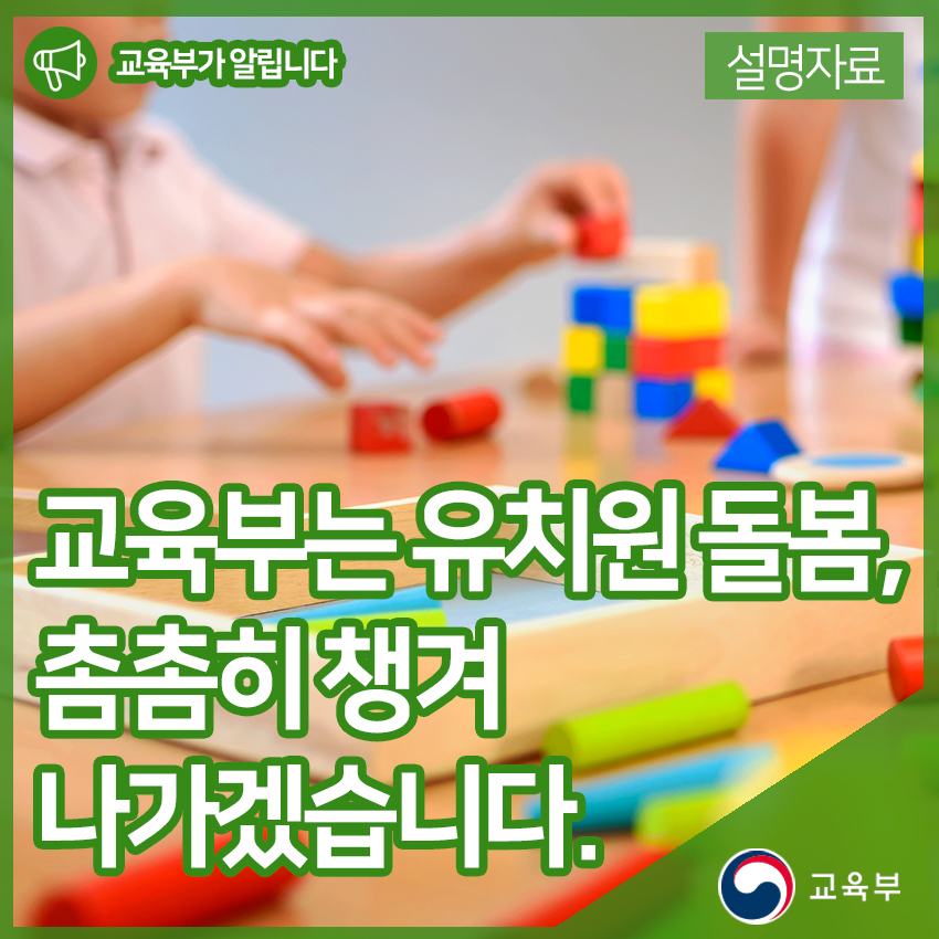 교육부는 유치원 돌봄, 촘촘히 챙겨 나가겠습니다.