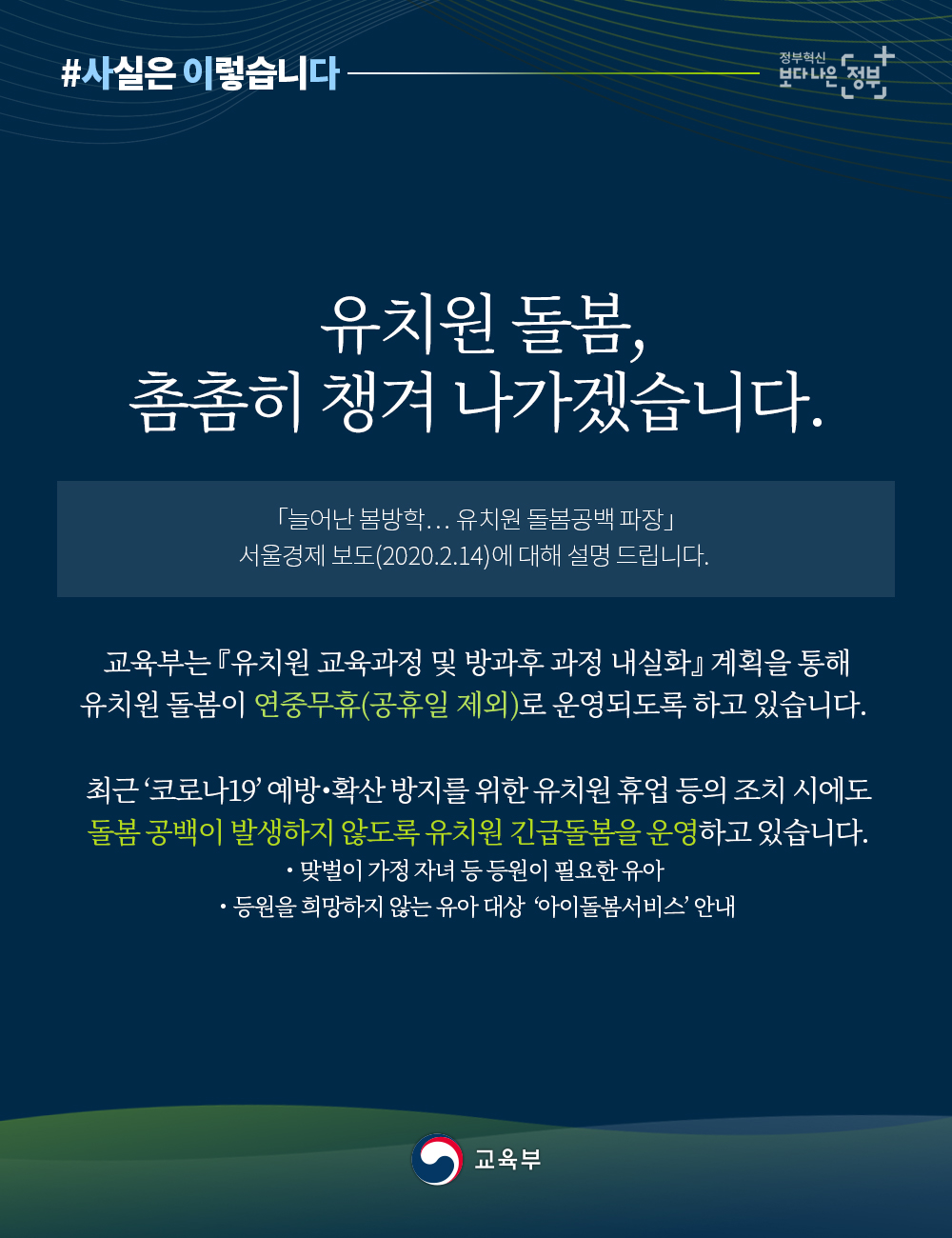 [유치원돌봄, 촘촘히 챙겨 나가겠습니다.] 본문