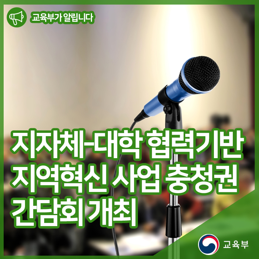 교육부(부총리 겸 교육부장관 유은혜)는 「지자체-대학 협력기반 지역혁신 사업」의 기본계획*을 확정하기에 앞서 현장의 의견수렴을 거쳐 사업의 효과성과 현장 적합성을 높이기 위하여 2월 17일(월) 14시에 충남 공주대학교에서 사회부총리 주재로 충청권 간담회를 개최한다.