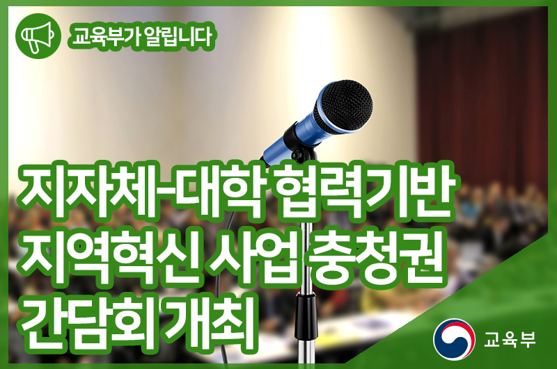 교육부(부총리 겸 교육부장관 유은혜)는 「지자체-대학 협력기반 지역혁신 사업」의 기본계획*을 확정하기에 앞서 현장의 의견수렴을 거쳐 사업의 효과성과 현장 적합성을 높이기 위하여 2월 17일(월) 14시에 충남 공주대학교에서 사회부총리 주재로 충청권 간담회를 개최한다.