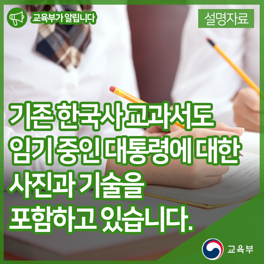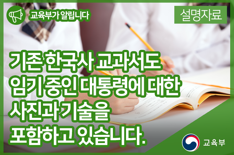 기존 한국사 교과서도 임기 중인 대통령에 대한 사진과 기술을 포함하고 있습니다.