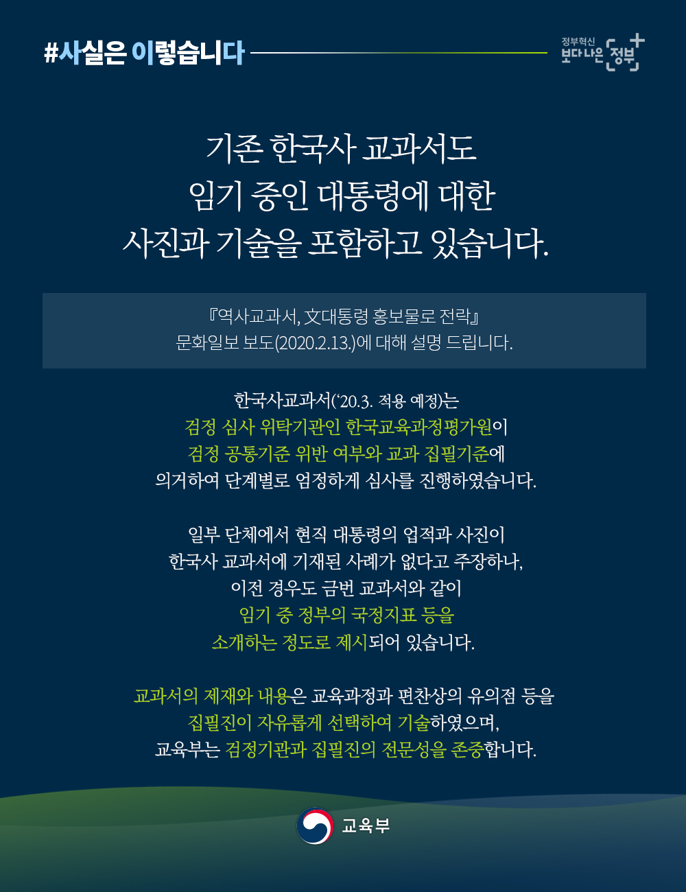 [기존 한국사 교과서도 임기중인 대통령에 대한 사진과 기술을 포함하고 있습니다.] 본문