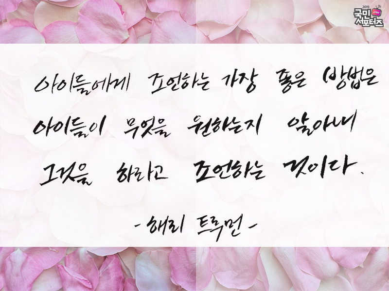 미국의 제34대 부통령 '해리 트루먼'이 한 말입니다. 아이들의 인생에 큰 도움이 되고 싶어서, 한 번에 가는 쉬운 길을 알려주고 싶어서, 우리 부모님들은 '조언'이라는 것을 쉽게 시도하시죠?