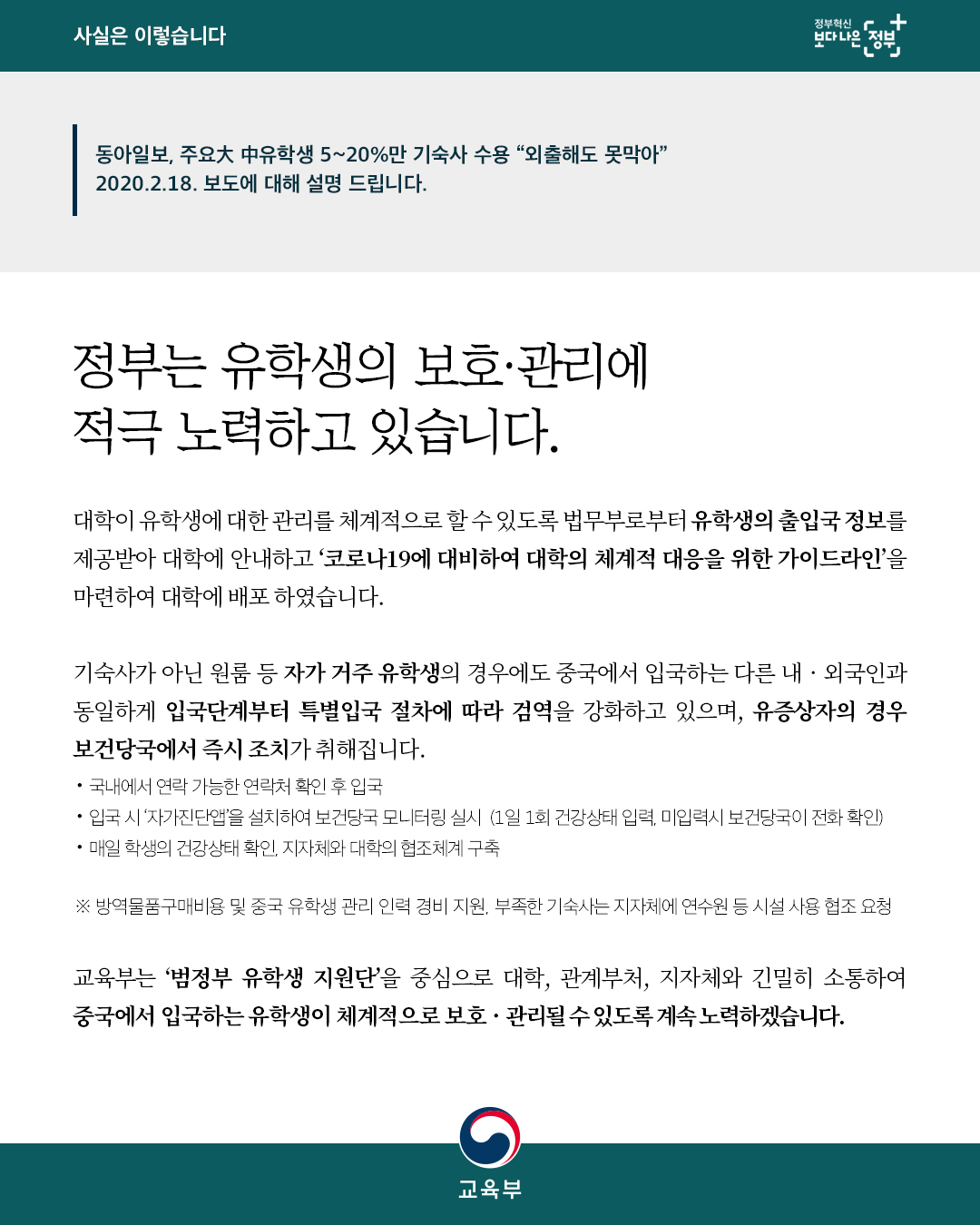 [정부는 유학생의 보호•관리에 적극 노력하고 있습니다.] 본문