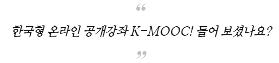 K-MOOC( Massvie Open Online Course). 한국형 온라인 공개강좌로